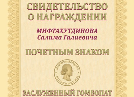 14.10.2025 Награждение Мифтахутдинова Салима Галиевича, президента компании ООО «Международная корпорация ЭДАС», почётным знаком «Заслуженный гомеопат» Российской Федерации
